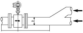 | 7.支管進總管 對于流量計前端有兩個支管進總管時,應保證流量計的前直管段≥30D,后直管段≥3D | ![]() | |||||||||||||||||||
