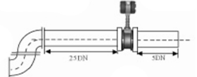 | 5.不同平面兩個(gè)彎管的安裝 如果流量計(jì)的前端有兩個(gè)90°彎頭,要保證流量計(jì)的前直管段≥25D,后直管段≥5D | ![]() | |||||||||||