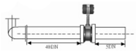 | 3.彎管的安裝: 如果流量計(jì)的前端有90°彎頭或T型接頭,要保證流量計(jì)的前直管段≥15D,后直管段≥5D | ![]() | |||||||||||