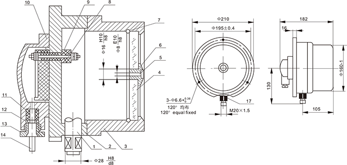 注: 防爆電接點壓力表的觀察窗的材質其抗沖擊強度不小于4J。觀察窗一旦損壞,則不準使用。