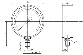 5. 氨用壓力表外形尺寸圖: