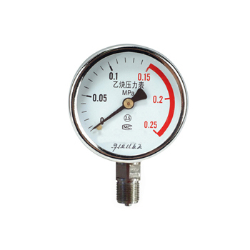 YY乙炔壓力表適用測量乙炔介質的壓力。嚴禁接觸油脂類物質。